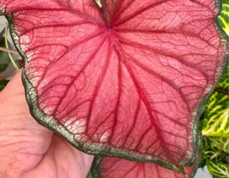 neben Alocasia eine der schönsten Blattpflanzen, mit viel rot. Bis 40 cm hoch.