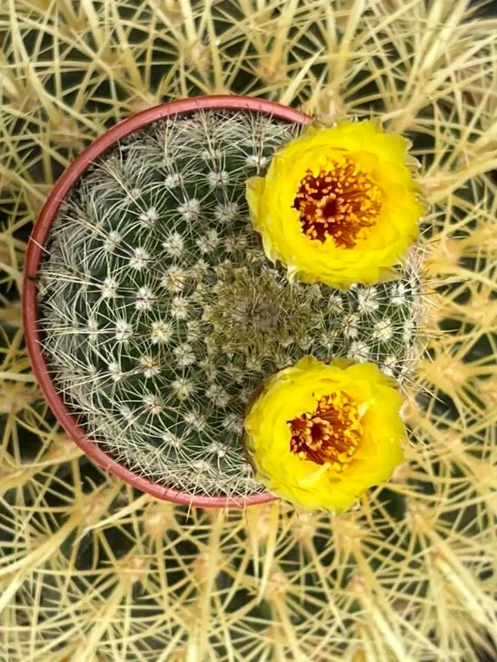Meist typische gelbe Notocacteen, mit tiefrosa Stempeln.