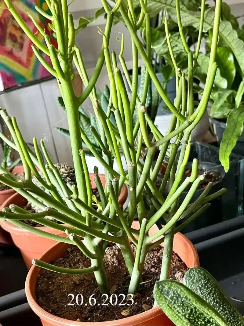 der Bleistiftstrauch wird in Zimmerkultur bis 80 cm groß.