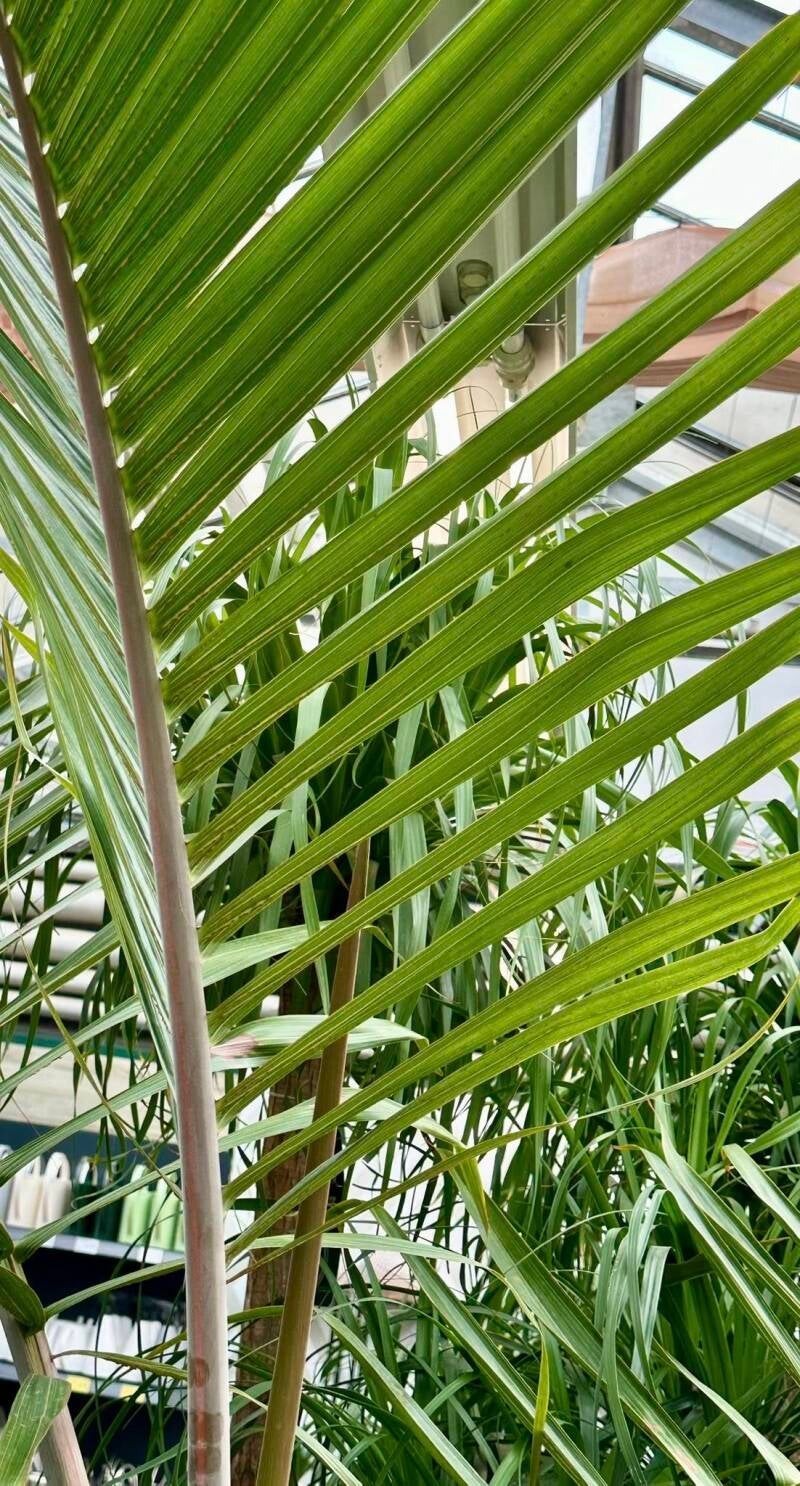 In der Jugend eine Zwiebel entwickelnd, im Topf bis ca 1,5 m hoch, bei guter Pflege auch höher. H.verschaffelti (Spindelpalme) wird häufiger angeboten, aber auch selten, bleibt kleiner, sie wird in der Heimat bis 5 m hoch und hat einen dm von 25 cm. Ihre Stiele sind rötlich gefärbt.