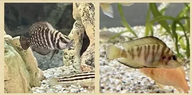 A.fasciatus (Neolamprologus fast Seeweit verbreitet, im oberen Felsenbereich 15 cm, Weibchen 9 cm) ist etwas schlanker als die anderen. Ab 112-200 liter. Früher haben sie Trockenfutter nicht angerührt, eventuell Frostfutter. Sie waren nur mit Lebendfutter zu befriedigen. Meine Arten die ich habe aus Wien und auch von Peter nehmen Trockenfutter ohne Probleme an. Immer vor Kauf nachfragen.