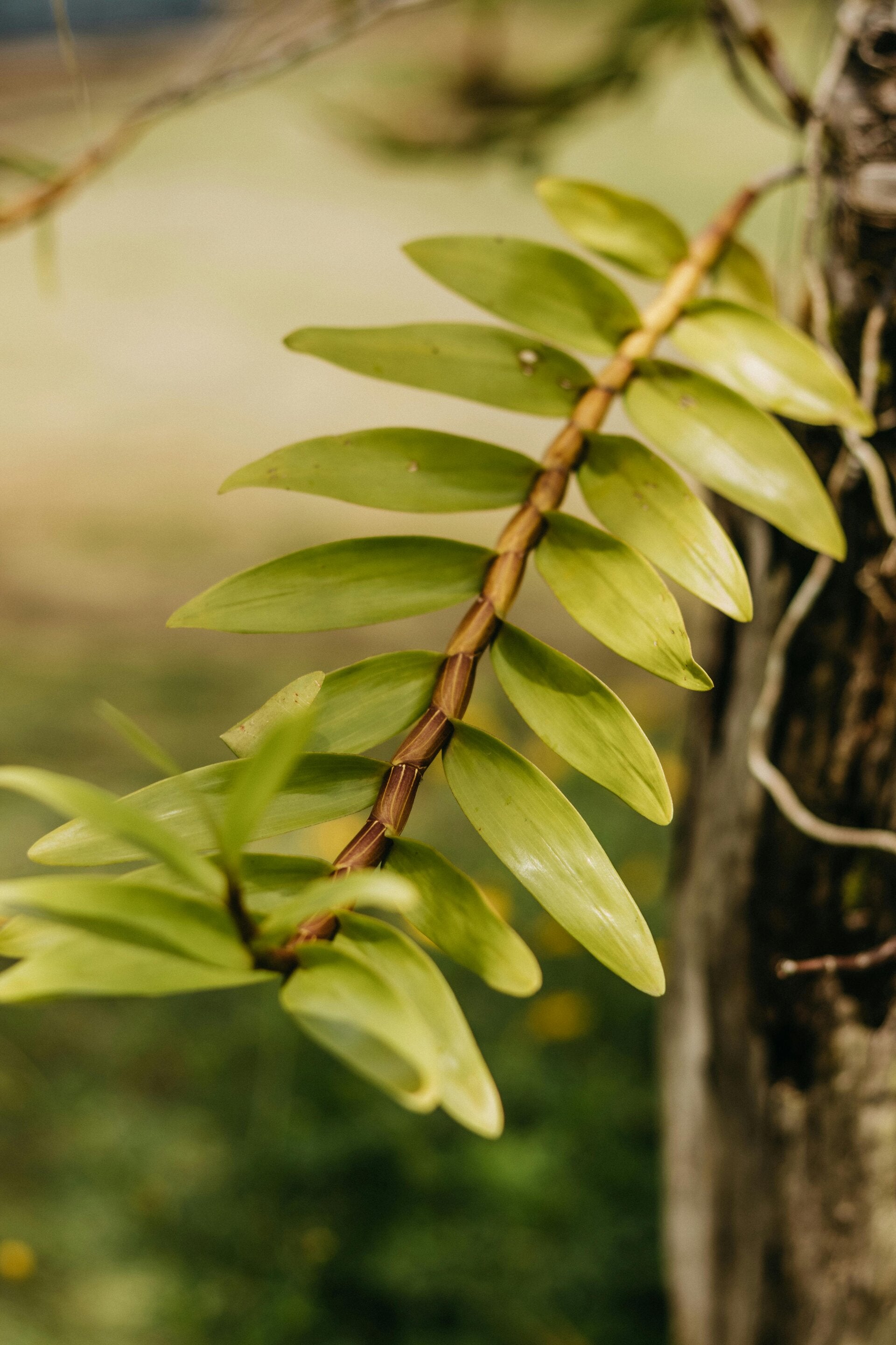 sie besitzt eine Stammknolle. Daraus entspringen grüne, glänzende Wedel.