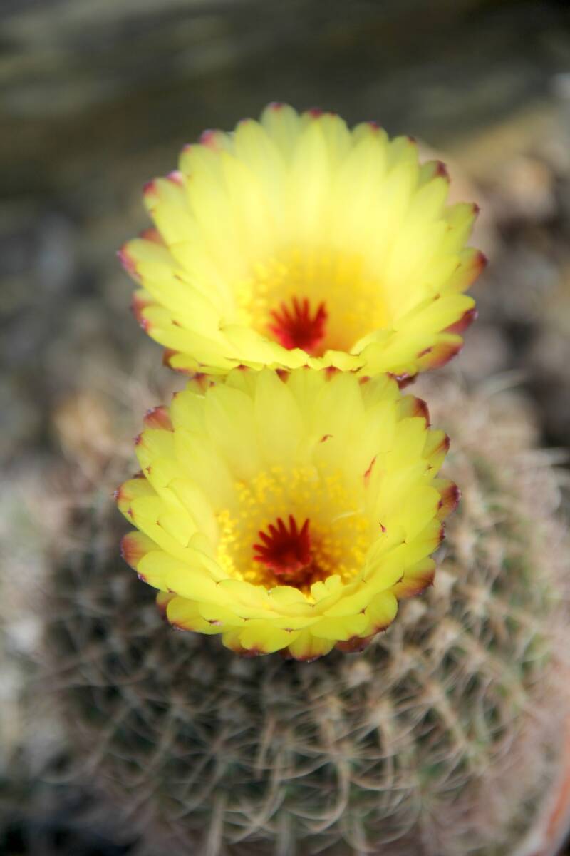 N.caespitosus kommt aus Uruguay. Klein bleibend, kugelig bis kurzsäulig wachsend. Wenn man pfropft werden sie größer. Beschrieben von Backeberg 1935. Entdeckt von Buining 1967. Gelbe Blüten.