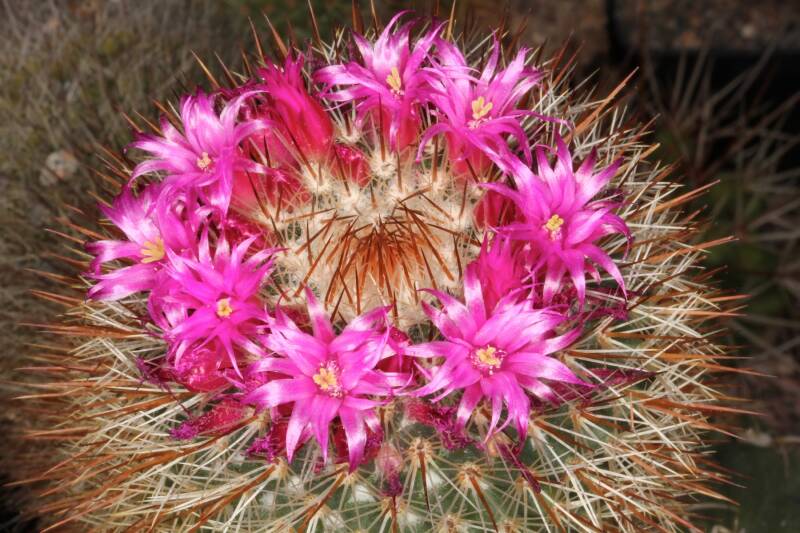 M.n. ssp. bella kommt aus Mexiko. Einzeln wachsend, später sprossend. Bis 15/9 cm. Rosa Blüten.