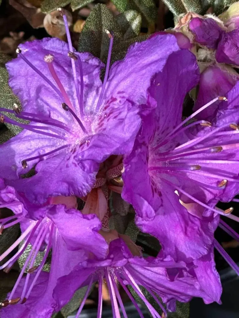 R.russatum entwickeln dunkelblaue bis violette Blüten. Klein bleibend. Braucht gleichmäßige Feuchte.