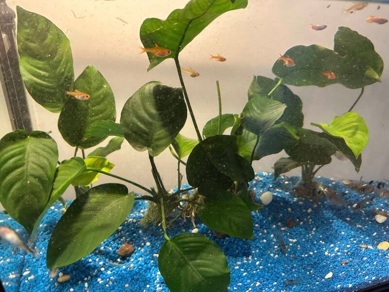 sie sind anspruchslos (gefleckte Formen sind anspruchsvoller) und kommen mit wenig Licht aus. Bei zuviel Licht, veralgen sie furchtbar wegen des langsamen Wuchses. Düngen nicht viel das mögen sie nicht, auch ohne Dünger kommen sie gut aus. Bekommen sie gelbe Blätter (Chlorose) dann eisenbetont düngen. Sie sind sicherlich am weitesten verbreitet von den Anubien. Die normale Art wird recht groß (40 cm Stöckerl), var barteri bis 20 cm, nana max 10 cm. Das Rhizom darf nicht unter Substrat, nur die feinen Wurzeln. Am besten aufbinden oder in Löcher stecken, oder bei großen Stöckerl beschweren dann kann man sie auch schweben lassen.